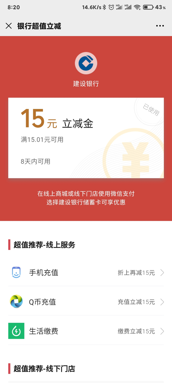 不懂建行了,先是3张5元兑换码,接着3张10元兑换码,再然后三张15元兑换码。十一月充满意外,十二月但愿继续加油😂