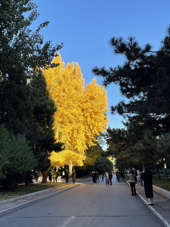 // 转@某斯 我校一棵银杏树,因下午某个时间会在俩幢高楼夹缝的阳光“独”照下熠熠生辉而声名远播,甚至被冠以“圣树”的美名。下午去图书馆还书偶然撞见,金灿灿的惊喜来得猝不及防,未能免俗,掏出手机留下一份念想。