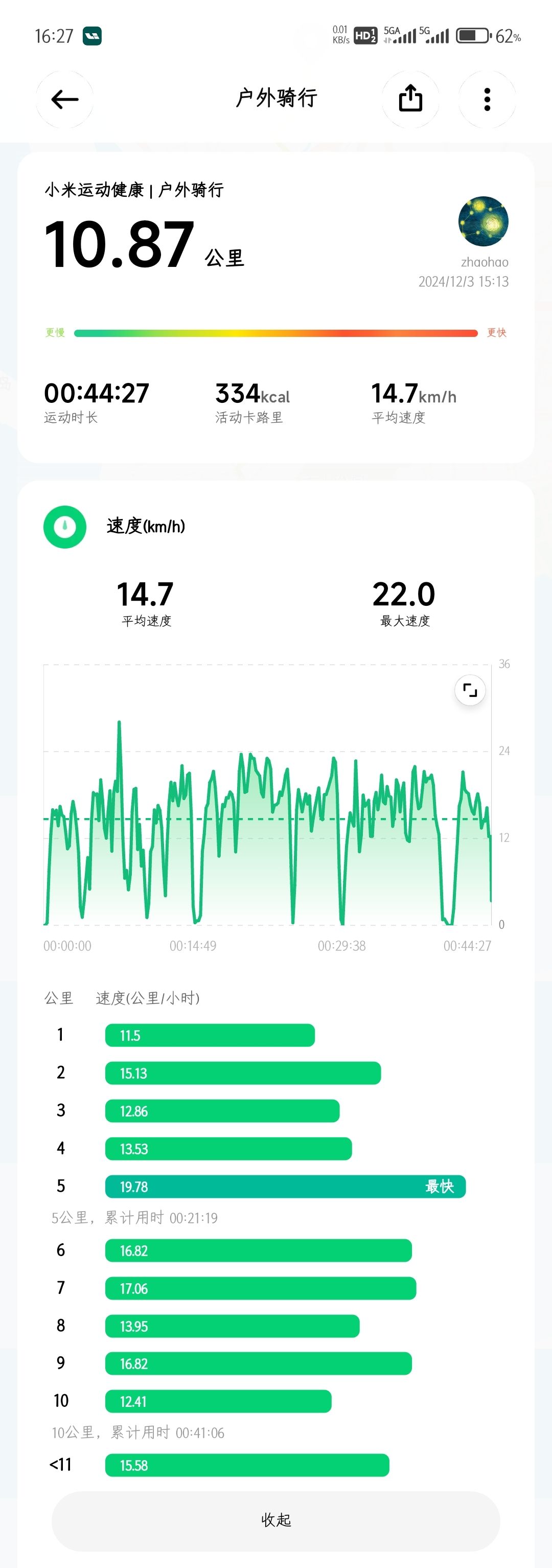 昨天悠闲骑车来回20km,用着费力型号的共享单车,今天尽力最快单程10km,但平均速度才差了1km多点,主要被等红灯给拉下速度了。就像开车时候也是差不多这10公里,很长距离还是高架封闭路,最终平均下来的速度也才二十多公里每小时。